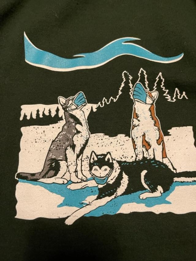 Since our inception in 1998 we have had a booth at all the Siberian Husky Club of America's (SHCA) National Specialties. For many years our resident artist, Barb Branham, produced a Howliday card image. Many people appreciated the understanding of Siberian Huskies that Barb captured in her pictures and the cards were a great success. Barb retired from this activity after producing the 2020 image. All the cards can be viewed by clicking the "Howliday Cards Archive" link on the left. Barb's artwork also adorned clothing, note cards, tote bags, tick keys and other items that we sold over the years. Since 2019 we have been running clothing sales campaigns with companies that provide the shirts to order and we have no leftover inventory.