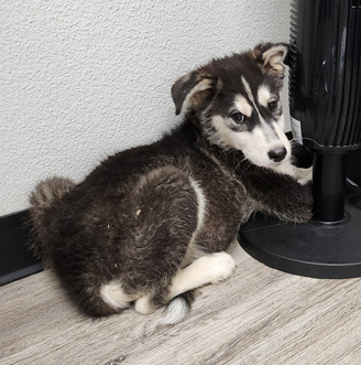 Hope 4 Huskies - Tramp - WashingtonThis young pup (4 months old) and his littermate, Lady, were dumped in a cornfield to fend for themselves. They were clearly in distress when Christina rescued them. Unfortunately, Lady did not survive, but Tramp underwent surgery and a mass was removed from his stomach (probably a cob of corn!). He was also treated for ringworm and an infection.
